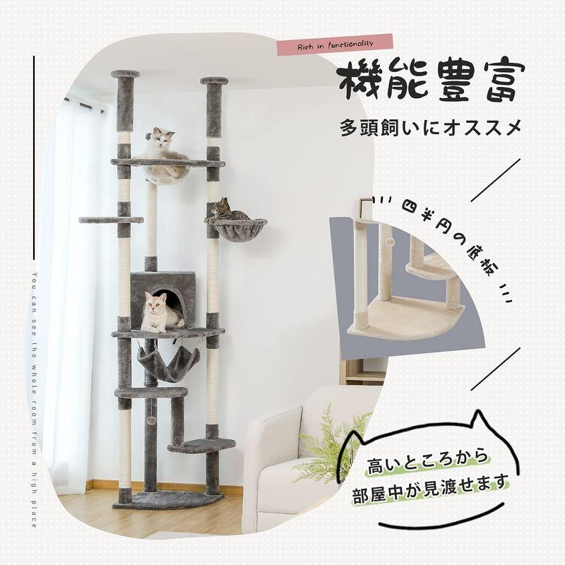 PETEPELA(ぺテぺラ) キャットタワー 突っ張り ツッパリ 猫タワー スリム 省スペース 透明 宇宙船ハンモック おもちゃ 麻紐 爪と