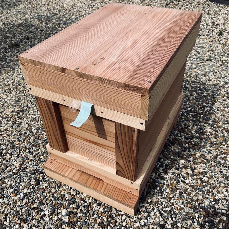 内地杉(国産杉)を100%使用し1つ1つ手作りで作製された日本ミツバチ用の巣箱です。厳選したフシが少