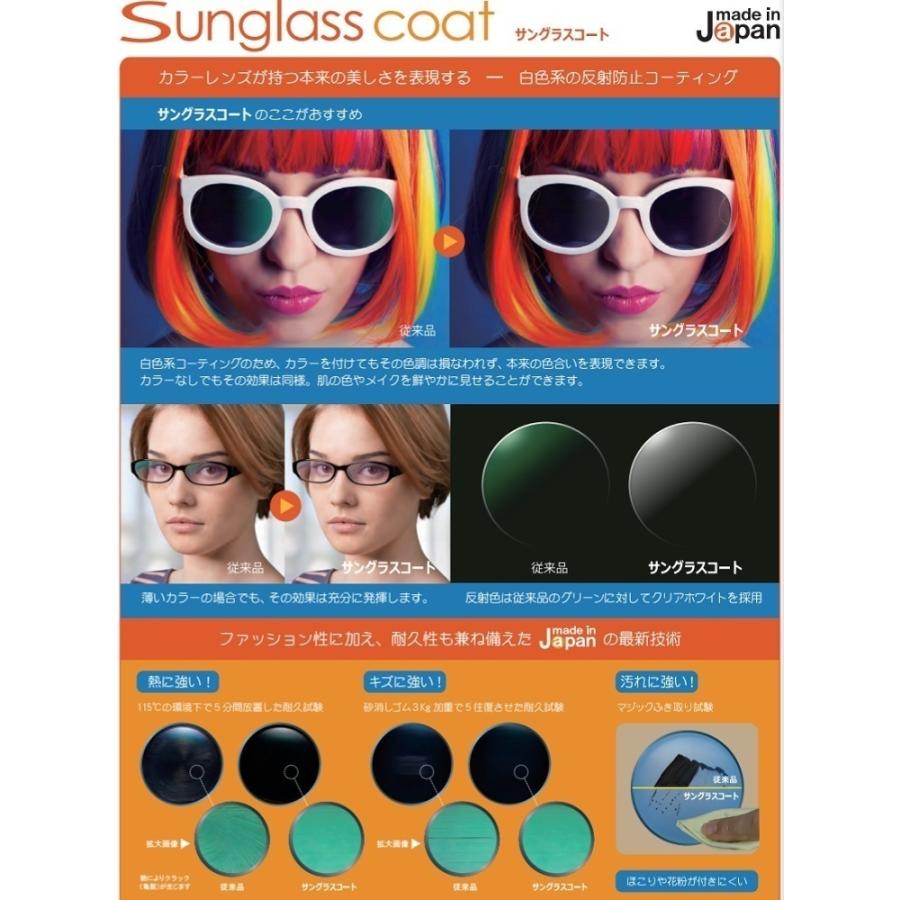 商品情報 メーカー:イトーレンズ レンズ:エリア174 屈折率:1.74 設計:エリア別両面非球面 コート:標準トランジェコート(耐傷撥水+ハードマルチコート) ・オプション ・TRN UVプラス(TRNコート+裏面UVカット) ・SKY2コート(ブルーライトカット) ・SKY3コート(TRN UVプラス+耐熱+ブルーライトカット) ・IR SKY2コート(ブルーライト+近赤外線カット)SKY系のコートはマゼンダ色の反射になります。 近赤外線はシワ・たるみの原因となり目元は皮膚が薄くシワやたるみができやすい部分なので美容対策で女性に人気のコートとなってます。 ・エレガントコート(耐熱・耐傷・静電気防止・低反射) ・サングラスコート(耐熱・耐傷・静電気防止・ホワイトマルチ) UVカット:標準仕様 |