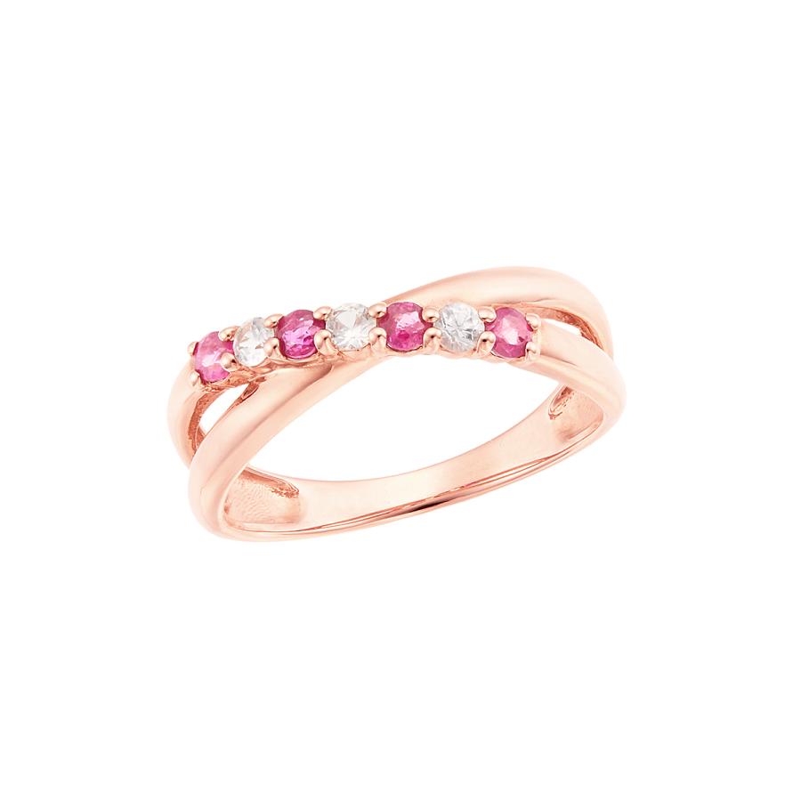 ルビーとホワイトサファイアがセットされたピンキーリング。メタルとストーンのクロスデザインが