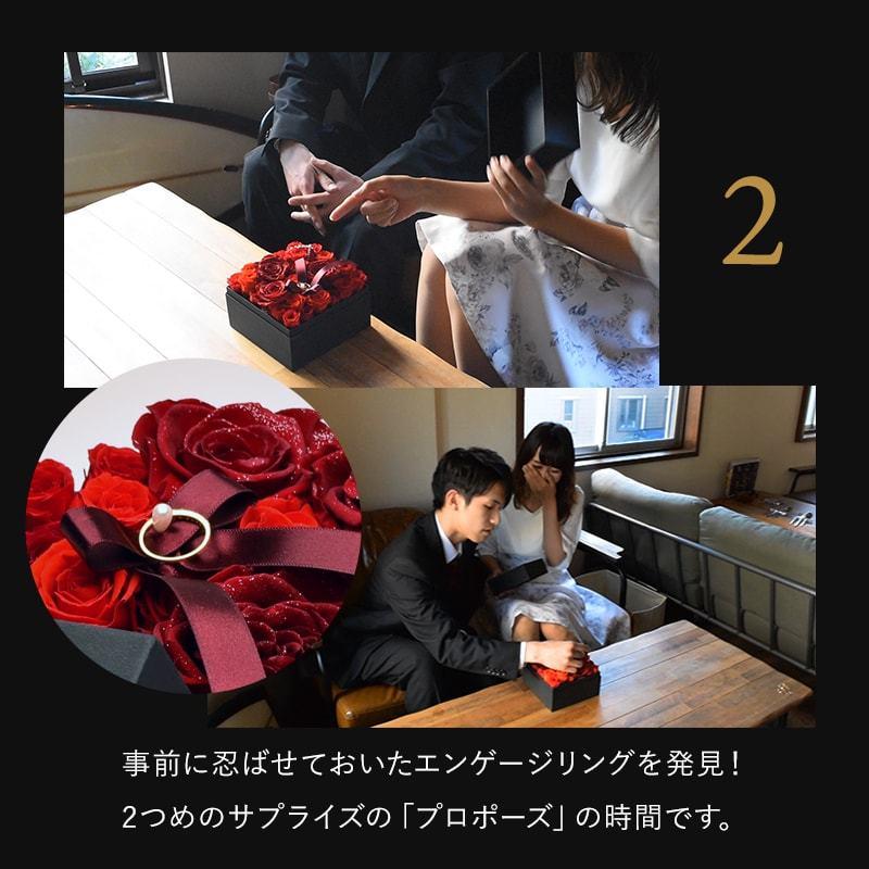 商品情報 人気のダイヤモンドローズを使用したプリザーブドフラワーのフラワーボックス。 33本のバラには「生まれ変わっても一緒にいたい」という意味があり、プロポーズにぴったりなフラワーボックスです。 ピンの部分に指輪をひっかけてセットすることができます。 エンゲージリングをかけて、プレゼントするのもおすすめです。 ラッピングをしてお届けしますが、事前に指輪をかけれるようにリボンを別途お付けしてお届け致します 無料サービス:メッセージカード・手提げ袋 納品書、請求書など金額の分かるものは、同梱しません。 ※ご注意事項※ 掲載写真の指輪などのジュエリーは商品に含まれません。 お客様ご自身でご用意ください。 プリザーブドフラワーは大変デリケートな素材です。 プリザーブドフラワーの性質上花びらの欠けやヒビが発生します。 ご了承くださいませ。 お取り扱いの際は、逆さまにしたり、衝撃を与えないようご注意ください。 蓋をする際お花や葉っぱを巻き込んでしまう可能性がございます。 優しく蓋をするようにしてください。 |