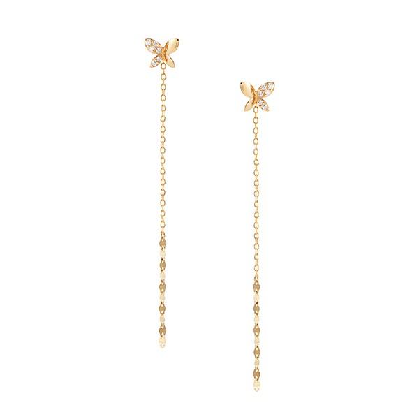 ひらひらと舞う蝶が耳元をエレガントに飾ります。ダイヤモンドとメタルの組み合わせが甘くなり